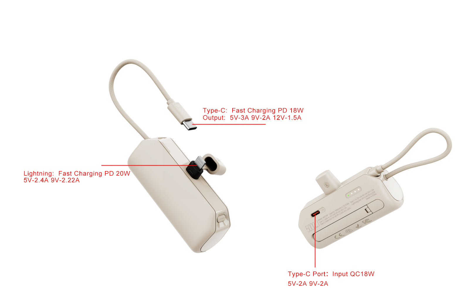 Daily travel portable fast charger power bank 5000mAh with lightning plug