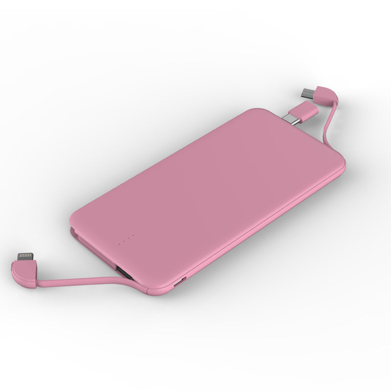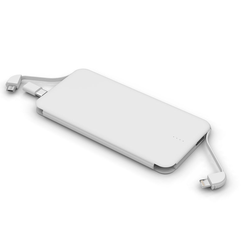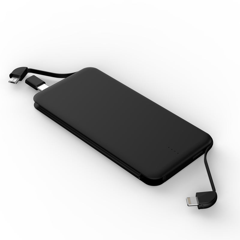 Dual Built-in Cable Power bank 5000MAh, Innovational User-friendly design---Micro USB Cable+Lightning Cable+Type-C Adaptor